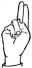 На ћирилици написано МИНА ПАВКОВ састоји се из 10 слова [?]. Исписано ћириличном једноручном азбуком за глувонеме: